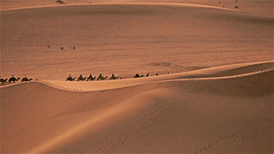 當鏡頭追隨著沙漠里的馬蹄印變成腳印時,即使不給馬匹的畫面,觀眾也能敏銳地察覺到,駿馬已經累死了。當沙漠里的腳印變成彎彎曲曲的橫溝時,這個人或許已經體力不支,匍匐前進了。